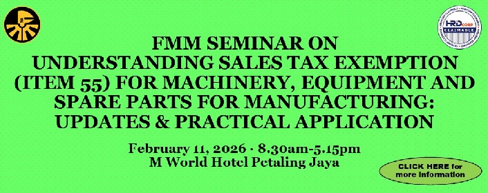 FMM Seminar on Understanding Sales Tax Exemption (Item 55) for Machinery, Equipment and Spare Parts for Manufacturing: Updates & Practical Application